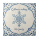 Snowflake pattern blue & white holiday custom name ceramic tile. You can edit the text in the center, change the font, change the color, size, etc. Gift these tiles as custom name coasters for each family member, for friends or teams, use them for home accents on your bookshelves, in your living rooms and bedrooms, or as mosaic wall art with other tiles. Or leave the central space empty, and use as decorative backsplash ceramic tiles.