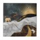Un magnifique carreau en céramique abstraite d'inspiration cosmique qui mêle nature, luxe et mystère. La composition est composée d'un soleil doré rayonnant qui s'élève sur des montagnes de marbre noir texturées, contrastées par une lune d'or croissant nichée dans un riche marbre brun. Un éléphant solitaire en or traverse le terrain surréaliste, ajoutant un élément d'émerveillement et de symbolisme. Le ciel nocturne, rempli d'étoiles chatoyantes, complète l'atmosphère céleste. Avec son mélange de textures de marbre, de tons métalliques brillants et de paysages oniriques, ce design saisit un équilibre entre force, sérénité et beauté infinie de l'univers.