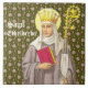 St. Etheldreda (ou Audrey; c. 636-679) est l'un des saints anglais médiévaux les plus populaires en Grande-Bretagne. Elle est née princesse anglienne de l'Est, est devenue reine de Northumbrie et est morte une religieuse. Veut une fois et se marie deux fois pour des raisons d'Etat, néanmoins, elle est restée vierge. Quand son deuxième mari commença à faire pression pour ses droits matrimoniaux, elle demanda l'avocat de St. Wilfred, Archevêque de York, qui lui conseilla de devenir une religieuse et encouragea sa vocation. Elle fit ses voeux à Coldingham en 672. Au cours des années suivantes, elle fonde un grand monastère double pour hommes et femmes à Ely, Cambridgeshire, sur lequel elle préside comme abbess. En un peu plus de quatre siècles, en 1109, le site de son abbaye d'Ely serait constitué cathédrale. Elle meurt d'une douleur à la gorge en 679. + Ici, St. Etheldreda (Audrey) est décrite comme une abbesse, ayant mis de côté sa robe royale avec sa doublure d'hermine, sceptre, et couronne laïque qui apparaissent sur le sol à ses pieds (pas visible dans ce détail). Elle porte maintenant une couronne rayée poursuivie de fleurs stylisées. Dans sa main droite, elle tient un livre ; à sa gauche, la plus grosse poitrine de son abbesse avec son sudarium ou son ‘chiffon à sueur’ utilisé pour empêcher la décoloration de la tige métallique du personnel par une paume sucrée. D'ordinaire, elle tient une maquette de la cathédrale d'Ely et une verge en herbe ou un lis de pureté. + Fête : 23 juin + Crédit d'image (P 003) : Détail d'une image antique de S[t].Etheldreda.A[bess].V[irgin]. d'une empreinte dévotionnelle de la fin du 19ème siècle en chromoxylographie, publiée à l'origine par Friedrich Pustet, Regensburg, New York et Cincinnati. De la collection privée de l'architecte de l'éphémère religieux.