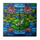 Carreau Stained Glass Green Frog and Water Lily Flowers