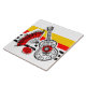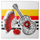 Un design fantaisiste de style rétro avec des souvenirs de vacances espagnoles ; guitare en fer forgé, ventilateur en dentelle et rose rouge sur un arrière - plan rayé. Un design personnalisable en noir, blanc, rouge et jaune doré pour vous permettre de personnaliser avec vos propres textes, images et idées. Une image art numérique originale.