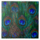 Un décor graphique de plumes de paon de style coloré vibrant sur une idée de cadeau personnalisé fin.