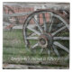 Roue Rustique De Style Occidental, Carrelage En Céramique. Art numérique. Relique d'une époque révolue, il a été photographié dans l'ancien parc d'attractions Adirondack, Frontier Town. Entièrement personnalisable ; faites-le vous-même. Modifiez le libellé selon vos besoins ou supprimez le texte entièrement.