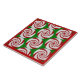 Si vous prenez les dalles de bonbons rouges et blanches et, au lieu de les tortiller, il suffit de les rouler et de les couper à travers, alors au lieu de sucres de canne vous obtenez les gouttes classiques de menthe poivrée. Et quel joli motif ils font ! Mettez ce carreau sur votre table de salle à manger pour empêcher un plat chaud de endommager la finition fine.