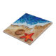 aquarelle traditionnelle peinture paysage de vagues océaniques bleues en mousse lavant à terre une plage de sable avec moules et étoiles de mer dans le sable sur un carrelage en céramique.