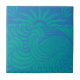 Coucher de soleil bleu et Turquoise et vagues de l'océan design graphique dans le style Art Nouveau de la plage côtière bohème.