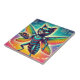 Illustration unique et ludique d'un super-héros chat-insecte, alliant charme félin à élégance insecte. Avec des ailes métalliques chatoyantes et une expression héroïque, cette créature fantaisiste tient fièrement une assiette de délicieux plats comme un trophée. Un arrière - plan cosmique dynamique avec des icônes alimentaires abstraites complète ce design surréaliste et imaginatif. Parfait pour les amateurs de gastronomie, les amateurs d'imaginaires et les amateurs d'art excentrique.