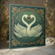 Carreau Swan Couple Art Nouveau Forest Green Wall Accent