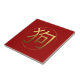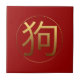 Symbole chien d'or avec un effet numérique en relief sur l'arrière - plan transparent. Conception sur carreaux en céramique carré avec arrière - plan rouge foncé.. Vous pouvez facilement modifier la couleur de l'arrière - plan en cliquant sur le bouton personnaliser. Coussin correspondant, crayon, stylo, bouton, carte de voeux et plus... Parfait pour le Nouvel An Chinois du Chien 2018 ou Anniversaire (personnes nées dans l'année du Chien). — "Le Chien (狗) est l'un des 12 ans du cycle des animaux qui apparaissent dans le zodiaque chinois lié au calendrier chinois. L'année du chien est associée au 戌 du symbole de la branche terrestre. Le caractère 狗 fait référence à l'animal réel tandis que 戌 fait référence à l'animal zodiaque. (...) On peut dire que les personnes nées dans ces plages de dates sont nées dans l'"Année du Chien", tout en portant le signe élémentaire suivant : 14 février 1934 -3 février 1935 = Chien de Bois, 2 février 1946 - 21 janvier 1947 = Chien de Feu, 18 février 198 - 7 février 1959 = Earth Dog, 6 février 1970 - 26 janvier 1971 = Metal Dog, 25 janvier 1982 - 12 février 1983 = Water Dog, 10 février 1994 - 30 janvier 1995 = Wood Dog, 2 9 janvier 2006 - 17 février 2007 = Fire Dog, 16 février 2018 - 4 février 2019 = Earth Dog, 2 février 2030 - 22 janvier 2031 = Metal Dog, 22 janvier 2042 - 9 février 2043 = Water Dog - " Wikipedia