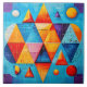 Symboles géométriques Abstrait #09. Une symphonie de formes colorées converge en un kaléidoscope de teintes, créant un paysage de rêve abstrait géométrique surréaliste. Des triangles, des cercles et des arcs audacieux se fondent harmonieusement dans une danse de bleus vibrants, jaunes, oranges et violets.