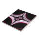 Ce carrelage en céramique symétrique présente un art fractal épicé abstrait en noir, rose et blanc.