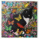 Éclairez votre jour - les taches de rousseur dans les papillons est un minou de smoking se reposant en nature entourée par de beaux papillons. Ce chat noir et blanc de tux est le centerfold dans un festival extérieur des papillons jaunes, oranges, d'aqua, de lavande, pourpres et rouges. Les papillons de citron, d'améthyste, de violette, de saumon, de magenta et de sarcelle d'hiver dansent et créent la musique qui chuchote par le champ du rose des fleurs. Les taches de rousseur a en grande partie la fourrure noire, les pattes et les favoris blancs et peu de limande de blanc sur sa bouche. Vous pouvez éprouver la paix, la sérénité et la guérison pendant que vous regardez mon travail.