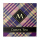Design écossais violet, jaune doré et bleu. Motif sans couture. Texte et monogramme personnalisés.