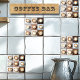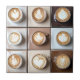 Image mignonne de tasses de cappuccino sur des carreaux plus petits de différentes couleurs. Créez un thème mignon pour les amateurs de café dans votre cuisine avec ce carreau en céramique à l'aspect embossé. CECI EST UNE IMAGE IMPRIMÉE