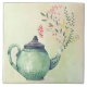 Belle illustration d'aquarelle présente une grande théière verte avec des ressorts de baies et des branches de feuilles à bec sur l'arrière - plan de lavage abstrait