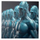 Almost blue men dressed in blue metal outfit gear.