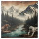Un tigre du Bengale et un tigre blanc se dressent au bord d'une rivière tranquille, entourés de hautes montagnes et de forêts denses sous un ciel spectaculaire.