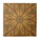 De la Gingezel Cosy Collection, un beau tournesol d'art numérique riche en beauté fait un carreau qui ira bien avec tout décor de bois naturel chaud. Les couleurs sont le jaune doré, l'orange et le vert. Art mathématique génératif par Judi Suni Hall à Gingezel.
