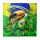 Le Toco Toucan brésilien sur la jungle tropicale, portant une écharpe aux couleurs du drapeau brésilien. Pour les amoureux du Brésil et pour les supporters de la Coupe du Monde de football Brésil 2014 ! Art vectoriel original Copyright BluedarkArt TheChameleonArt