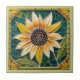 "tournesol jaune", "tournesol sur vert foncé", "vert bleu turquoise", "mosaïque de style gaudi", "design inspiré van gogh", "jardin d'été", "tête de fleur décorative", "carreaux de céramique fleurie ornementale", fleur, tournesol