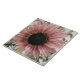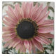 Ce magnifique carreau présente une belle photo d'un tournesol rose pâle. Le tournesol est naturellement rose et les pétales ont un anneau extérieur rose pâle et un anneau intérieur rose plus foncé. Le milieu où les graines sont noires. Cette photo a été prise dans un jardin.