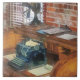 Créations de Susan Savad -- Le chef de gare était la personne responsable de la gare ferroviaire. Ce bureau de chef de gare pittoresque contient une machine à écrire à l'ancienne et un ventilateur vintage avec des pales sur un bureau en bois avec des casiers.