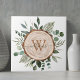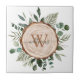 Apportez la beauté de la nature chez vous avec notre carreau de céramique Tranche de bois rustique et feuillage à aquarelle monogramme. Une touche de forêt et une élégance charme de campagne pour votre espace ! Ajoutez l'initiale du nom de votre famille et faites-en vôtre