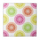 Des tranches lumineuses d'agrumes dans une variété de couleurs amusantes composent le motif graphique sur cette tuile. Des citrons jaunes et roses ainsi que des citrons verts et des oranges sont représentés en coupe transversale dans cette oeuvre d'art simple et moderne.