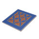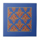Un carrelage classieux à utiliser comme trivet ou pour la décoration, avec une fleur de lys motif traditionnelle en rouge bordeaux et or sur un arrière - plan bleu nuit et une large bordure bleue.