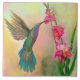 Un colibri iridescent planté d'une fleur. Utilisez cette charmante tuile comme un trivet ou présentez-vous comme une oeuvre d'art.