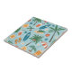 Bright tropical pattern ceramic tile featuring palm trees, surfboards, citrus slices, flip flops, and fruity drinks in a fun summer-inspired style. Ideal for beach lovers, surfers, vacation fans, and anyone who loves colorful tropical aesthetics.