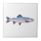 Ce carreau de céramique est décoré d'une illustration de truite arc-en-ciel. L'indigène pour refroidir des courants de montagne des montagnes rocheuses, le truite arc-en-ciel est un du poisson d'eau douce le plus coloré de l'Amérique du Nord. Pendant la saison d'élevage, les taches noires importantes d'affichage masculin de truite au-dessus d'un motif d'arc-en-ciel de couleurs bleues, vertes, roses, argentées, blanches, et autres.