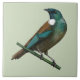 Illustration peinte d'un oiseau néo-zélandais. C'est un tui. Les Tui sont des oiseaux chanteurs avec une touffe blanche de plumes sous leur tête, d'où son nom anglais, l'oiseau Pason. L'oiseau de la Nouvelle-Zélande est perché sur une branche et est dessiné dans un style en détresse.