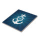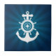 Carreau de céramique décoratif avec l'illustration nautique de thème comportant un logo d'ancre, de volant et de boussole sur blanc et bleu.