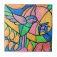 Dessin de colibri de style en verre souillé aux nuances de pourpre, de rose, de bleu, de vert, et l'or.