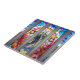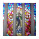 Une photographie magnifique d'une fenêtre d'église honore l'avant de cette tuile. La fenêtre est verre souillé fait dans des couleurs vibrantes. Grand pour des tentures et la décoration.