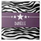 Sassy Star Zebra Tile moderne et tendance, avec un arrière - plan zébrée noir et blanc chic et une bordure violette audacieuse ornée d'un motif étoilé amusant. Ce design girly peut être customisé avec le texte personnalisé de votre choix. Cliquez sur "Customiser" pour trouver d'autres options de personnalisation.