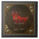 Nous sommes fiers d'offrir cette tuile décorative de haute qualité comportant le premier signe du zodiaque : Bélier. Ce symbole magnifique est dépeint avec de l'or découpé et la laque rouge ornée de bijoux de relief sur un fond en cuir. Les quatre soleils frappés en or représentent la totalité des saisons, chacune dépeint une pierre porte-bonheur incorporée de Bélier : diamant.