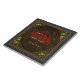 Nous sommes fiers d'offrir cette tuile décorative de haute qualité comportant le deuxième signe du zodiaque : Taureau. Ce symbole magnifique est dépeint avec de l'or découpé et la laque rouge ornée de bijoux de relief sur un fond en cuir. Les quatre soleils frappés en or représentent la totalité des saisons, chacune dépeint une pierre porte-bonheur incorporée de Taureau : émeraude.