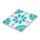 Belle turquoise simple et moderne sur la tuile florale blanche de motif.