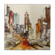 Une photographie d'une peinture pour aquarelle originale par l'artiste anglais Terry Donnelly du Times Square, New York, Etats-Unis montrant à hauts bâtiments une scène montrant les cabines et les personnes jaunes sur le trottoir