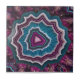 Cette tuile accrocheuse présente une section transversale détaillée d'une géode, présentant des couches violettes et turquoises riches avec bandes complexes. Le design saisit la beauté naturelle d'un géode, ce qui en fait un ajout étonnant à n'importe quel espace. Parfait pour ajouter une touche d'élégance naturelle et de couleurs vives à votre décor maison.