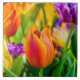 Tulipes colorées sur un lit à fleurs. Presque toutes les couleurs arc-en-ciel présentes. Scène florale lumineuse et positive. Photographie macro.