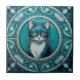 Tuile en céramique turquoise et bleu aqua, imitation relief chat, inspirée des mouvements Art Nouveau et Arts et Artisanat avec un arrière - plan floral. Idéal pour un cadeau de ménage à utiliser comme un trivet ou pour ajouter un carrelage décoratif dans votre propre carrelage. Le carrelage en céramique est lisse, avec un effet 3D faux. C'est la tuile orientée à gauche. Associez-le au carrelage orienté droit pour un décor de carrelage symétrique.