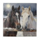 Carreau Two Horses on a Snowy Farm Under the Moon
