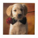 Un chien/chiot mignon tenant un rose et posant pour une jolie photo
