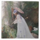 Carreau Une dame dans un jardin qui soigne ses fleurs avec