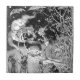 Une souris, une grenouille et quelques gnomes observent une sorcière remuer le contenu de son chaudron dans une illustration antique d'un livre de 1899 enfants. C'est nuit et une batte vole au-dessus. La dentelle de la Reine Anne arque au-dessus de la sorcière et de ses amis affamés.