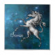 Belle illustration vintage de style héraldique unicorne sur ciel céleste arrière - plan. Personnaliser avec nom ou autre texte en caractères de script blanc.
