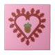 Cette tuile impressionnante présente une image art numérique d'un cordon entouré d'un coeur rouge. La glande est brune avec un casquette vert et de mignons petits yeux avec des élèves noirs et un sourire sur le visage. le coeur autour de la glande a une série de jolis feuilles de chêne rouge attachés à elle pointant vers l'extérieur du coeur créant un beau motif feuillu.